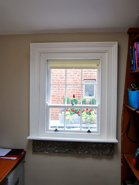 We made new sash windows using Accoya wood, which is both sustainable and has a 50 year guarantee against rot! And we used a mix of single and double-glazed panes of Pilkington glass.